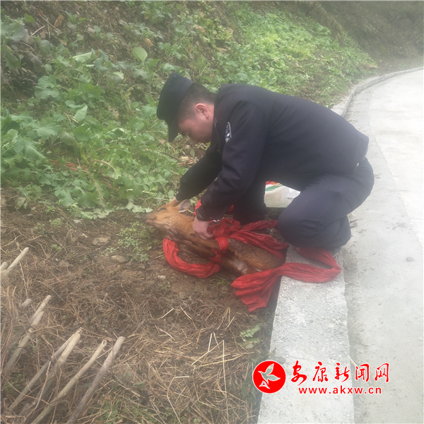 12月24日,早晨10點(diǎn)左右,雙橋鎮(zhèn)東河壩小區(qū)群眾發(fā)現(xiàn)一只麂子被土狗追逐,麂子慌不擇路,從懸崖上跳下河壩受傷。雙橋派出所民警接到群眾電話后,立即前往進(jìn)行營(yíng)救,將其捕救回所里。問迅趕來的農(nóng)綜站干部了解了麂子的健康狀態(tài)后,在麂子恢復(fù)體力后,于下午14點(diǎn)30分和派出所的民警一起將麂子帶到無人區(qū)放歸山林。