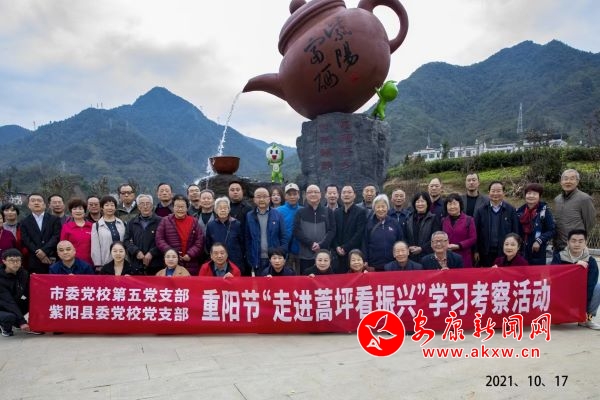 本網(wǎng)訊(通訊員 路永婷)金秋十月,重陽之際,市委黨校第五黨支部聯(lián)合紫陽縣委黨校黨支部,來到紫陽縣蒿坪鎮(zhèn)開展重陽節(jié)“走進(jìn)蒿坪看振興”學(xué)習(xí)考察活動(dòng),市縣黨校三十余名退休干部職工參加。