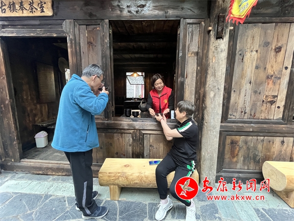 “三月的那個(gè)三來,上茶那個(gè)山呀......”行走在古鎮(zhèn)老街,一首悠揚(yáng)悅耳的歌聲撲面而來,走進(jìn)古鎮(zhèn)奉茶室,侯大姐滿懷激情,聲音高亢地為游客們演唱著紫陽民歌《三月三上茶山》,這已經(jīng)是她今天早上接待的第三批游客了,但絲毫看不出她臉上的倦怠。街道社區(qū)居民侯服琴,秉著對(duì)民歌文化和社區(qū)工作的熱愛,長(zhǎng)期致力于古鎮(zhèn)奉茶室義務(wù)接待工作,為游客演唱傳統(tǒng)紫陽民歌。“現(xiàn)在來煥古旅游的人越來越多,紫陽民歌是紫陽的傳統(tǒng)文化,我們有義務(wù)傳承和發(fā)揚(yáng)它,讓更多外地游客們都知道紫陽民歌、愛上紫陽民歌,愛上煥古這個(gè)好地方。”侯服琴樂呵呵地說道。在今年紫陽縣“茶山放歌 聲動(dòng)紫陽”民歌賽暨陜南民歌選拔比賽中,侯服琴更是用高亢嘹亮、動(dòng)聽淳樸的歌聲斬獲了二等獎(jiǎng)的優(yōu)異成績(jī)。