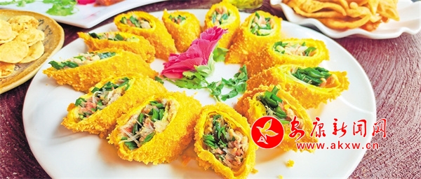 采風(fēng)團(tuán)的第一站,來到了蒿坪鎮(zhèn)雙星社區(qū)的聚福山莊,雙星社區(qū)是“十二五”期間建設(shè)的移民搬遷社區(qū),因?yàn)槿丝诰奂,村民王益軍?ldquo;十三五”期間搶抓蒿坪鎮(zhèn)發(fā)展農(nóng)旅產(chǎn)業(yè)的機(jī)遇,開辦了聚福山莊農(nóng)家樂。通過當(dāng)?shù)卣哿Υ蛟?ldquo;紫陽味道”品牌,聚福山莊開發(fā)出一系列具有當(dāng)?shù)靥厣拿朗承〕裕眉央攘糇】腿说哪_步與味蕾。“香酥羊肉餅、炸響鈴、蒸米蒿饃、農(nóng)家香酥里脊卷、油渣餅都是我們這的特色,原材料土生土長、綠色健康,客人吃了都說好。”在大廚汪顯峰簡單直白的介紹下,一行人食指大動,用親身體驗(yàn)言表出真實(shí)感受。“這個(gè)蒸米蒿饃很有特色,小時(shí)候物資匱乏,只好用面粉拌著山上長的米蒿用來蒸饃吃,現(xiàn)在生活好了,再吃蒿子饃真是別有一番風(fēng)味,希望當(dāng)?shù)卣苤r(nóng)民、農(nóng)企深挖本土資源特色,將小風(fēng)味打造成大產(chǎn)業(yè)。”作家、書法家蔣典軍看到眼前的小吃,發(fā)出了滿心感慨。