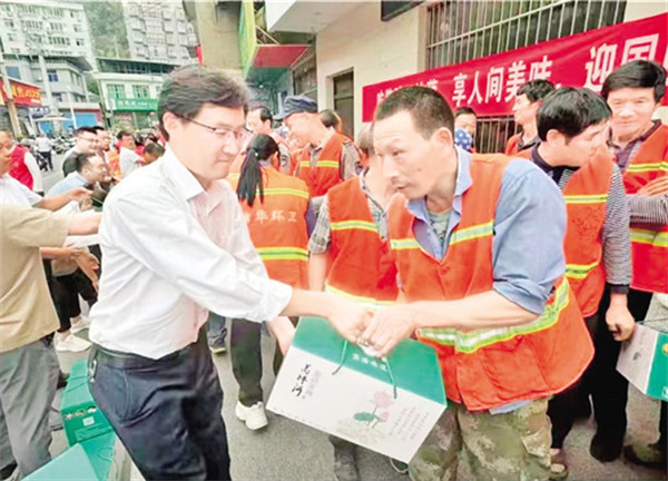 在國(guó)慶佳節(jié)前夕,蒿坪鎮(zhèn)黨委政府精心組織了一場(chǎng)別開生面的“吃豬蹄子燉藕,享人間美味,迎國(guó)慶佳節(jié),向環(huán)保衛(wèi)士致敬”主題慰問活動(dòng)。 劉姝含 攝