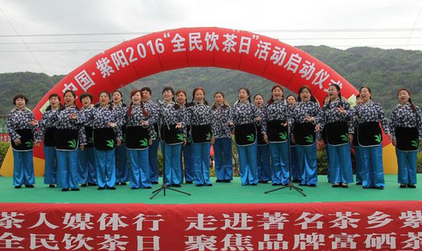 4月17日,由紫陽縣委、紫陽縣政府、中國茶葉學會和陜西省茶人聯(lián)誼會共同舉辦的紫陽縣2016“全民飲茶日”活動啟動儀式在向陽鎮(zhèn)富硒茶觀光園隆重舉行!叭瘛