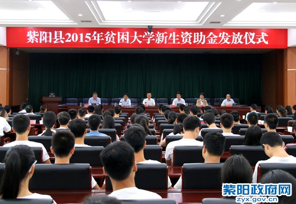 8月18日,紫陽縣委、縣政府舉行2015年貧困大學新生資助金發(fā)放儀式,為100名貧困大學新生現(xiàn)場發(fā)放了資助金,確保他們順利入學。縣長趙立根首先對考上大學的莘莘學……
