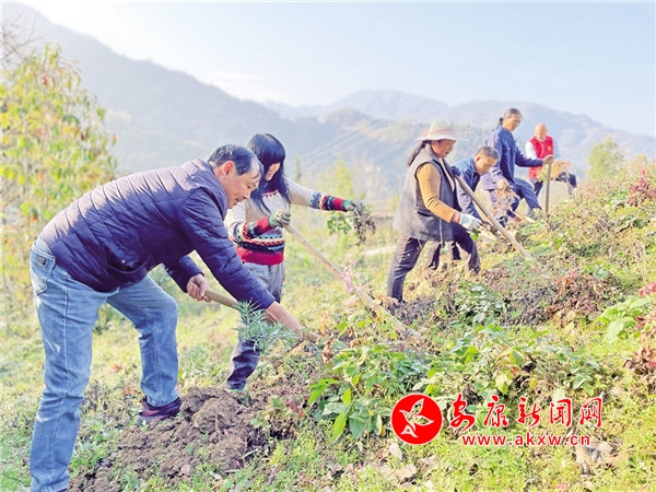 2022年11月6日,紫陽縣高橋鎮(zhèn)板廠村村民金漢忠的地里一片繁忙景象,走近一瞧,原來是一群身著新時代文明實踐字樣的紅馬甲志愿者,正在幫他采挖中藥材蒼術(shù)!