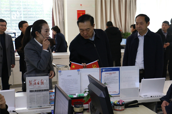 在市政務(wù)服務(wù)大廳、市公共資源交易中心,王剛查看各業(yè)務(wù)進(jìn)駐窗口、部分開評標(biāo)室和視頻監(jiān)控室,詳細(xì)了解業(yè)務(wù)辦理情況、招投標(biāo)工作流程、監(jiān)督管理等情況。隨后召開座談會,認(rèn)真聽取市行政審批服務(wù)局工作情況匯報。他強(qiáng)調(diào),要圍繞“全國一流、全省先進(jìn)”目標(biāo),深入推進(jìn)“放管服”改革、相對集中行政許可權(quán)改革和行政審批制度改革,扎實推進(jìn)政務(wù)服務(wù)“一網(wǎng)通辦”,大力營造良好營商環(huán)境。要不斷提高規(guī)范化水平,建設(shè)一流政務(wù)服務(wù)團(tuán)隊,為群眾和企業(yè)辦事提供更優(yōu)質(zhì)更高效的服務(wù)。