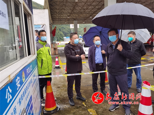 周康成來(lái)到紫陽(yáng)南服務(wù)區(qū)、紫陽(yáng)高速出口、城關(guān)鎮(zhèn)隔離點(diǎn)等地方檢查督導(dǎo),看望慰問(wèn)駐點(diǎn)、蹲守的一線防控人員,叮囑他們?cè)?ldquo;守好門”、“管好人”的同時(shí),一定要確保自身防護(hù)萬(wàn)無(wú)一失。
