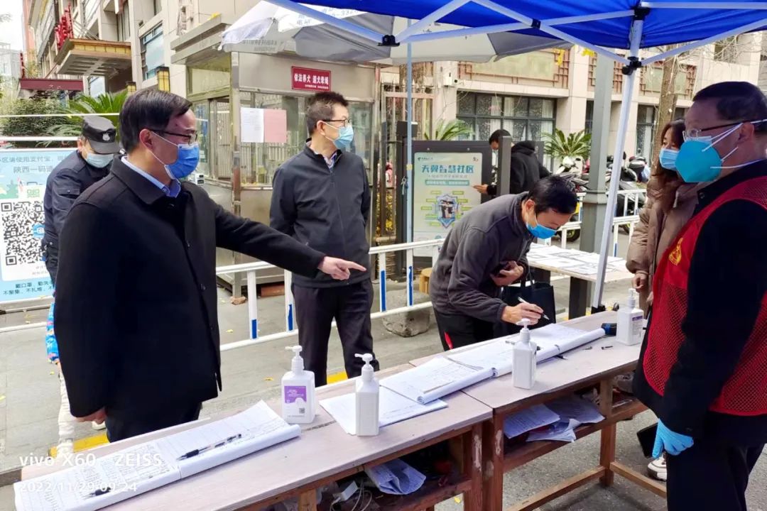 11月29日,氣溫驟降,寒風(fēng)襲人,下沉社區(qū)一線開展疫情防控工作的干部職工備受常委會(huì)領(lǐng)導(dǎo)的牽掛。一大早,市人大常委會(huì)黨組副書記、副主任鄭小東一行深入新鋪社區(qū)看望正在社區(qū)一線值守的干部職工,檢查指導(dǎo)社區(qū)疫情防控應(yīng)急工作,秘書長(zhǎng)左自文一同檢查。