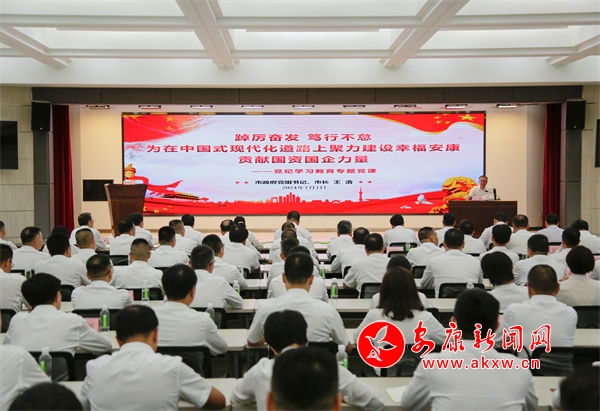 本網(wǎng)訊(通訊員 羅江 記者 吳單)7月1日,根據(jù)市政府黨組黨紀(jì)學(xué)習(xí)教育計(jì)劃安排,市委副書記、市長(zhǎng)王浩為市屬國有企業(yè)領(lǐng)導(dǎo)干部講授“踔厲奮發(fā)、篤行不怠,為在中國式現(xiàn)代化道路上聚力建設(shè)幸福安康貢獻(xiàn)國資國企力量”專題黨課。副市長(zhǎng)周孝斌主持。