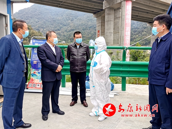 市長武文罡(左二)在安嵐高速嵐皋收費站檢查疫情防控措施落實情況