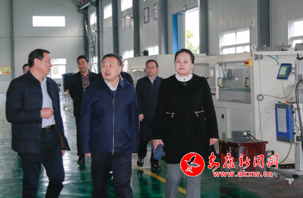 武文罡(右三)在漢陰縣中昌管業(yè)公司調研企業(yè)生產經營情況