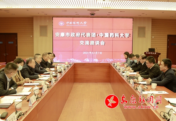 武文罡一行先后參觀考察了中國藥科大學(xué)藥用植物園、藥學(xué)博物館。在隨后召開的座談會上,武文罡代表市委、市政府向中國藥科大學(xué)長期以來支持安康特別是鎮(zhèn)坪經(jīng)濟社會發(fā)展表示衷心感謝。他表示,中國藥科大學(xué)與安康自2012年結(jié)緣,近十年先后派出5名專家教授、3名專業(yè)人才在鎮(zhèn)坪縣掛職幫扶和擔(dān)任駐村扶貧第一書記,為安康全域脫貧摘帽作出了巨大貢獻,希望中國藥科大學(xué)繼續(xù)關(guān)注安康、關(guān)心鎮(zhèn)坪,在助力安康實施鄉(xiāng)村振興戰(zhàn)略,打造中醫(yī)藥產(chǎn)業(yè)集群,推進醫(yī)藥產(chǎn)業(yè)振興發(fā)展等方面進一步提供科研、人才支持。