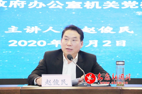 本網(wǎng)訊(記者 艾蓓)12月2日下午,市長趙俊民以普通黨員身份參加市政府辦公室機關黨委黨員大會,并以《深入學習貫徹黨的十九屆五中全會精神爭做新時代追趕超越排頭兵》為題,講授了一堂生動具體的黨課。市委常委、副市長劉建平、殷勇,副市長何邦軍、市政府秘書長陳伍文以普通黨員身份參加活動。