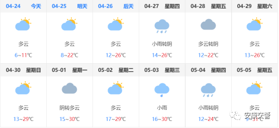 據(jù)氣象部門預(yù)測,“五一”期間,天氣較好。有出行計(jì)劃,需持續(xù)關(guān)注天氣情況,以便做好準(zhǔn)備。
