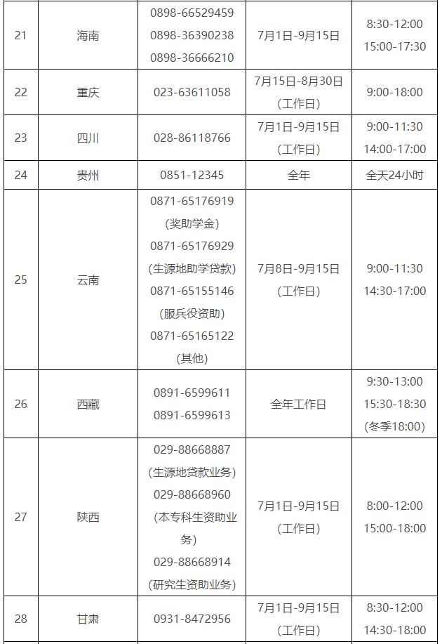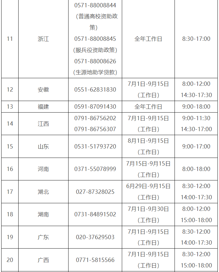 各。ㄗ灾螀^(qū)、直轄市)和中央部門所屬高校同步開(kāi)通了熱線電話,電話號(hào)碼與開(kāi)通時(shí)間可查看匯總表。