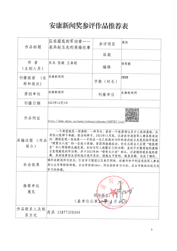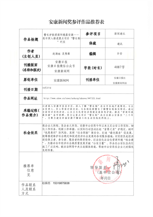 經(jīng)過編委會推薦、社黨委研究決定,擬推薦以下13件新聞作品參評2023年度“安康新聞獎”。公示時間從2024年3月25日至2024年3月29日,公示期為5個工作日。如有不同意見,請向安康日報社機關(guān)紀委、新聞管理部反映。nyB安康新聞網(wǎng)