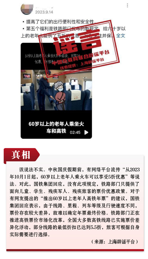 謠言3:今年國慶后老年人可半價購買火車票?