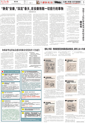 積極搭建民生服務(wù)平臺(tái),幫助群眾解決實(shí)際困難。2020年,本報(bào)堅(jiān)持正面宣傳,開(kāi)設(shè)“眾志成城抗擊疫情”欄目,深入宣傳、充分報(bào)道黨中央重大決策部署、聯(lián)防聯(lián)控措施、防控疫情的成效,使全市群眾在堅(jiān)定信心的同時(shí),興起了群防群控?zé)岢。充分發(fā)揮服務(wù)群眾、引導(dǎo)群眾功能,先后開(kāi)設(shè)“2020春我的宅家筆記”等欄目刊發(fā)稿件30多篇,引導(dǎo)市民不盲目跟風(fēng)不過(guò)度防護(hù),有效及時(shí)疏導(dǎo)公眾焦慮恐慌等情緒,凸顯了主流媒體的傳播力影響力和公信力。
