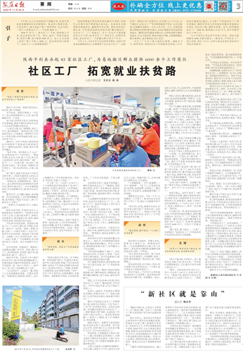 社區(qū)工廠 拓寬就業(yè)扶貧路(2020年11月26日 3版)