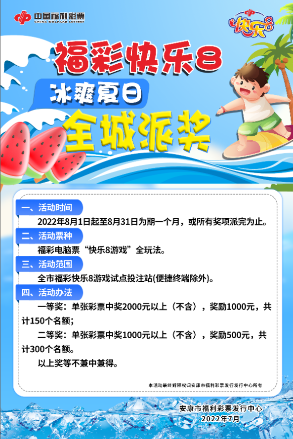 準(zhǔn)備好了嗎?福彩快樂8 冰爽夏日 全城派獎活動快開始啦!
