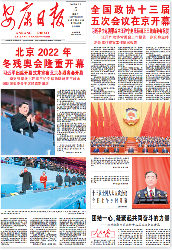 (2022年3月5日安康日?qǐng)?bào)01版“北京2022年冬殘奧會(huì)隆重開幕”、“全國政協(xié)十三屆五次會(huì)議在京開幕”)