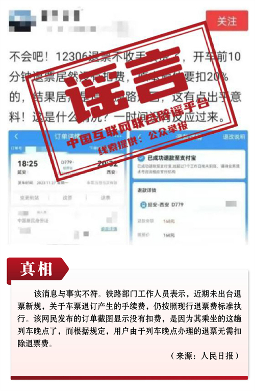 曲解民生政策,誤導公眾認知。隨著2024年腳步日益臨近,新年氣氛漸濃。歲末之際,有自媒體利用民眾對醫(yī)療保障、交通出行等民生熱點的關(guān)切,編造不實信息,吸引民眾關(guān)注,從而博取流量利益。比如網(wǎng)傳“醫(yī)保統(tǒng)籌額度年底將清零”“藥店已停止統(tǒng)籌額度支付”等謠言,讓許多參保人感到恐慌,多地醫(yī)療保障局快速辟謠;“酒醉駕判定標準要變了”“廣州成為全國首個限制外賣配送的城市”等謠言傳播,誤導公眾形成“酒醉駕處罰將減輕”的錯誤印象和“政策對外賣騎手不友好”的不良觀感;“火車票退票不扣手續(xù)費了”不實信息純屬將個體經(jīng)歷與公共政策混為一談。上述涉及公共政策的虛假信息傳播,誤導公眾認知,造成不良影響。