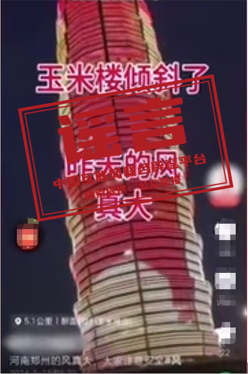 謠言:鄭州地標(biāo)建筑“大玉米”樓被大風(fēng)刮歪?
