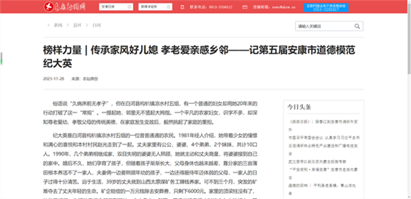 堅持以人為本報道理念,充分凸顯人文精神。報道《榜樣力量|傳承家風好兒媳孝老愛親感鄉(xiāng)鄰——記第五屆安康市道德模范紀大英》《我市3人上榜!2023年第四季度“陜西好人榜”發(fā)布》《王淳鋒:腳下沾著泥土心里揣著群眾》《趙光鮮:立足崗位謀發(fā)展巾幗創(chuàng)業(yè)勇?lián)敗返龋瑔⒌纤枷,溫潤心靈,詮釋真善美。