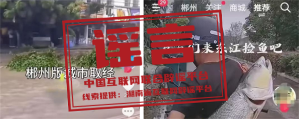 7月28日,某短視頻平臺(tái)出現(xiàn)兩段視頻,一段是城市街道被洪水淹沒(méi)并配文“郴州版城市取經(jīng)”的視頻;另一段是暴雨過(guò)后在積水中抓魚(yú)并配文“友友們來(lái)東江撿魚(yú)吧”的視頻。經(jīng)湖南郴州網(wǎng)信部門(mén)核實(shí),相關(guān)視頻系網(wǎng)民惡意拼湊,郴州并未出現(xiàn)視頻所述情況。網(wǎng)信部門(mén)已將謠言線索移交公安部門(mén)依法處置。