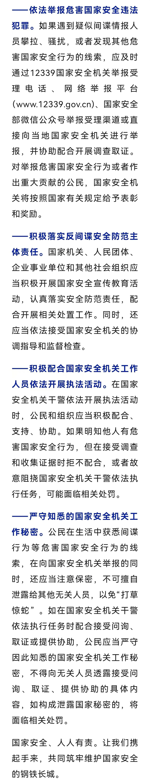 詳情:近年來,國家安全機(jī)關(guān)在人民群眾支持配合下,有力開展各項(xiàng)工作,堅(jiān)決維護(hù)國家主權(quán)、安全、發(fā)展利益!吨腥A人民共和國反間諜法》和《國家安全機(jī)關(guān)行政執(zhí)法程序規(guī)定》、《國家安全機(jī)關(guān)辦理刑事案件程序規(guī)定》等法律法規(guī)規(guī)章為人民群眾配合協(xié)助開展國家安全機(jī)關(guān)工作、共同維護(hù)國家安全提供了法律依據(jù)。(來源:“國家安全部”微信公眾號(hào)) 7pE安康新聞網(wǎng)