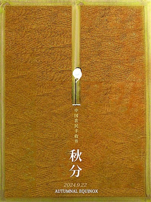 秋分時(shí)節(jié),是農(nóng)作物豐收的重要季節(jié),田間地頭一派農(nóng)忙景象。自2018年起,我國(guó)將每年秋分設(shè)立為“中國(guó)農(nóng)民豐收節(jié)”,圖④作品即聚焦這一主題,整體采用俯視角度,畫面中央一名農(nóng)民正在稻田中勞動(dòng),稻田的金黃顏色象征著豐收與希望,充滿視覺沖擊力,展現(xiàn)出大地滿載收獲的美好景象。