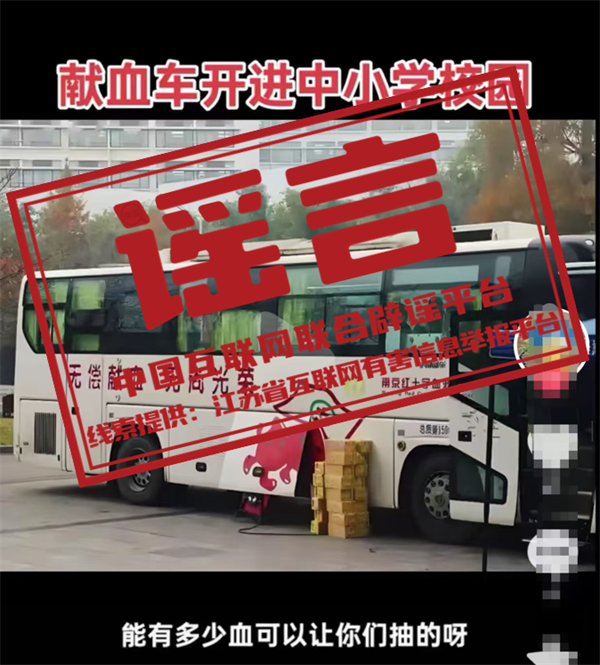 真相:近日,有網民發(fā)布配圖為南京紅十字血液中心獻血車的視頻,稱“獻血車直接開進中小學校園”“那中小學生十幾歲能有多少血可以讓你們抽呀”。經南京市衛(wèi)健部門核實,網傳信息系謠言。該視頻配圖實為2022年南京紅十字血液中心在南京林業(yè)大學組織獻血的照片。根據《中華人民共和國獻血法》規(guī)定,國家提倡18周歲至55周歲的健康公民自愿獻血。南京紅十字血液中心不接受18歲以下未成年中小學生獻血。(來源:“南京網絡辟謠”微信公眾號)