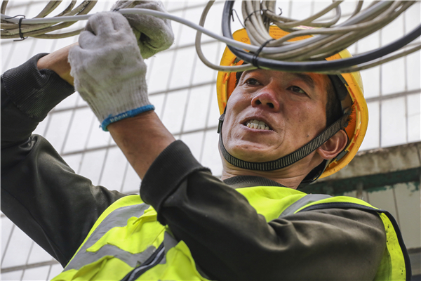 7月23日,聯(lián)通在張嶺街道進(jìn)行網(wǎng)線清理整治。(郭曉康)