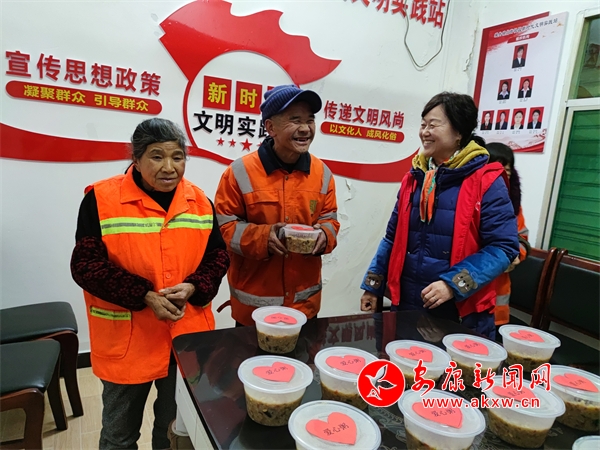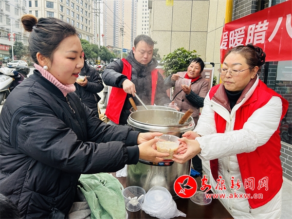 ▲ 漢陰縣城關(guān)鎮(zhèn)李家臺社區(qū)食堂開展“暖暖臘八節(jié) 濃濃社區(qū)情”免費(fèi)送臘八粥活動(dòng)。王建霞 攝