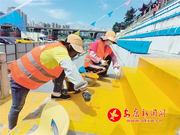 工人正在給看臺刷漆8wd安康新聞網(wǎng)