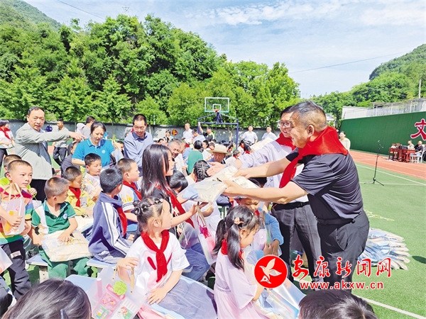 平利縣審計局聯(lián)合興隆鎮(zhèn)蒙溪街小學開展“六一”送關愛活動,為蒙溪街小學全體學生送去夏秋季校服。彭書梅 攝