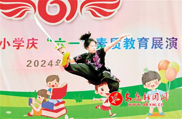 平利縣各小學、幼兒園開展多種活動,喜迎“六一”國際兒童節(jié)。圖為平利縣城關小學的學生在表演武術。沈奕君 攝
