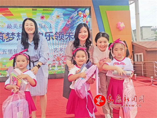漢濱區(qū)稅務局為五里鎮(zhèn)幼兒園的小朋友送去書包等文具慰問品。陳榮斌 攝