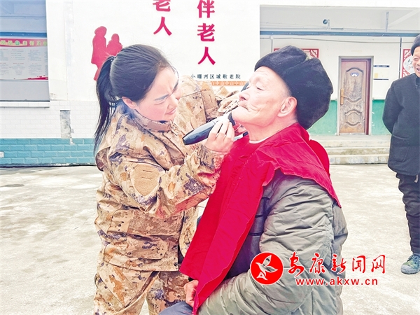 3月4日,鎮(zhèn)坪縣曙坪鎮(zhèn)民兵隊(duì)伍與志愿服務(wù)隊(duì)伍攜手走進(jìn)曙坪敬老院,開展學(xué)雷鋒志愿服務(wù)活動。薛榮瑩 攝