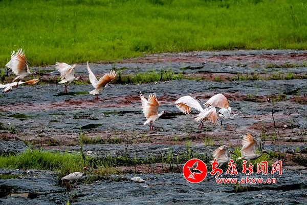 7月18日上午,22只野生朱鹮在漢陰月河草灘出現(xiàn)。據(jù)當(dāng)?shù)厝私榻B,近期就已發(fā)現(xiàn)十幾只朱鹮在此棲息,當(dāng)日朱鹮數(shù)量有所增加。據(jù)悉,我市自然生態(tài)環(huán)境不斷得到保護(hù)后,非常適宜朱鹮的生存,近幾年來(lái)已陸續(xù)發(fā)現(xiàn)朱鹮來(lái)到我市漢江水域和部分縣域小河覓食。 皮勇維 攝vvc安康新聞網(wǎng)