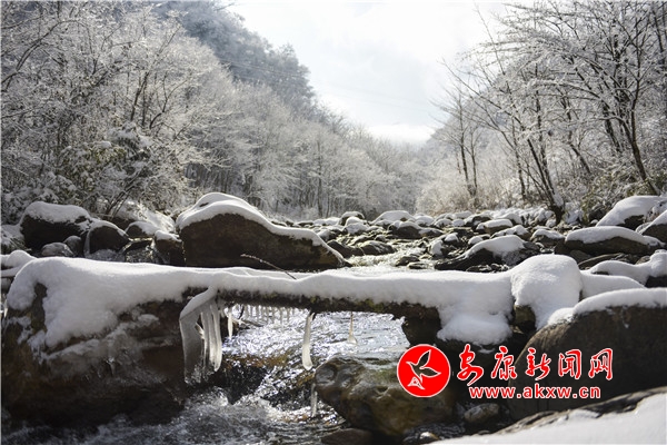 在嵐皋,有一種景總也看不夠,那就是神河源的雪景。神河源的雪景有著女子般的清奇秀麗,那銀裝素裹、玉樹瓊花的景觀似夢似幻,讓人流連忘返。李輝苗/文圖DNE安康新聞網(wǎng)