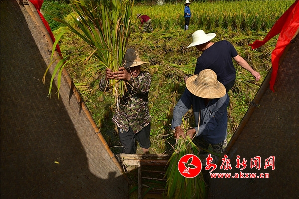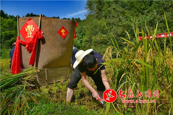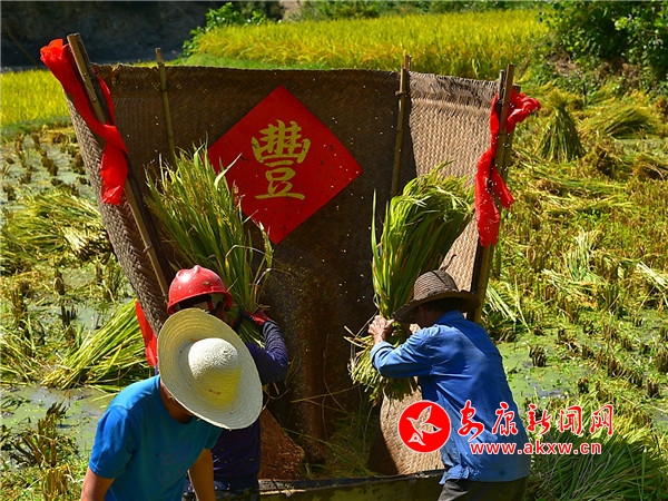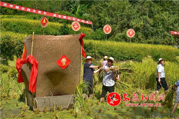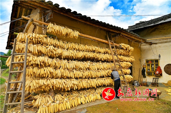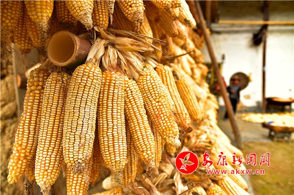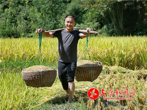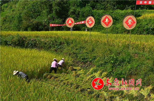 秋日,平利鄉(xiāng)村田園間梯田層層,稻浪滾滾,飽滿的谷穗壓彎了稻桿,放眼望去,遍野鋪金,空氣中也彌漫著淡淡的稻香。在西河鎮(zhèn)女媧山村三里溝原生態(tài)水稻田里,人們按照傳統(tǒng)的習俗和方式收割水稻,數十位村民手持鐮刀一字排開,迅速揮舞著手中的鐮刀,將金黃的稻穗割下并整齊的堆放。打谷人則分為兩組,兩人一組,交叉替換的將手中的稻秧在拌桶里反復甩打脫粒,拌谷聲“嘭呲嘭呲”有節(jié)奏地作響,聲勢頗為壯觀。與此同時,廣佛鎮(zhèn)松河村李家坡的農家小院已堆滿收回來的苞谷,郭老漢正在將苞谷殼撕開,編成串掛在屋檐下的竹竿上晾曬,金黃的苞谷棒子整齊排列,儼然一幅鄉(xiāng)村小院秋實圖。