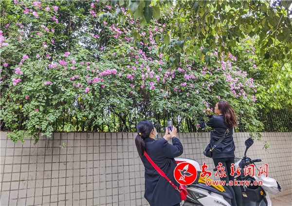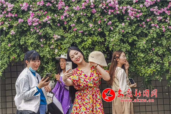近日,安康東堤外的漢寧宮院墻上的薔薇花盛開,成了安康的網(wǎng)紅打卡地,每天吸引了數(shù)百人到此賞花拍照。(圖文/陳德模)