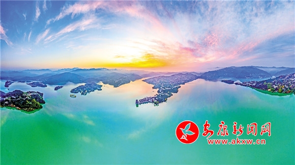 瀛湖是中國獨特的山水風(fēng)光之湖。秦嶺與巴山夾峙護(hù)佑,造就了如畫的湖,形成了夢幻的景。四時風(fēng)光,不遜西湖,不輸洱海,亦可自比千島湖。瀛湖冬景中蘊含著春華與秋色,初冬游覽瀛湖,遠(yuǎn)能看青山不墨千秋畫,近可聽流水無弦萬古琴。山起西北下東南,江自天邊出河谷,形成了地形上的小氣候,冬日里應(yīng)是天寒地凍,但瀛湖一地,冬雨過后,山谷風(fēng)來,云興霞蔚,日影扶疏?瓷,群山層林盡染,如調(diào)色板傾覆其上,一坡樹枝隨風(fēng)變,斑斕色彩比花美,游人盛贊“此景只應(yīng)天上有,人間能得幾回見”。觀水,湖面寬闊清凈,風(fēng)起波瀾,水光瀲滟,舟行碧波,人在畫中。晨起湖面輕霧籠罩,是海上瀛洲的景象;正午云光投射湖面,天空之鏡如夢幻般瑰麗;傍晚行至水窮處,坐看云起,就有了迷人的霞光,或金黃或橘紅,給湖面一層層染色,與山林應(yīng)和,便是紅黃翠綠清且淺,萬般顏色不爭春了。