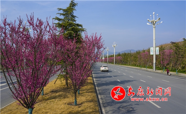 一場淅淅瀝瀝的春雨過后氣溫急劇回升,天氣回暖,伴隨著這大好天氣,安康高新區(qū)沿線的部分道路旁,粉嫩嬌艷的櫻花競相開放。一團團、一簇簇包裹著整個枝頭,蜜蜂在花間飛舞。沿路望去,密密匝匝的花朵宛如兩條粉紅色的緞帶在春風(fēng)的吹拂下起舞,在路邊綠色草坪的映襯下更顯妖嬈。(圖文/李。PZU安康新聞網(wǎng)