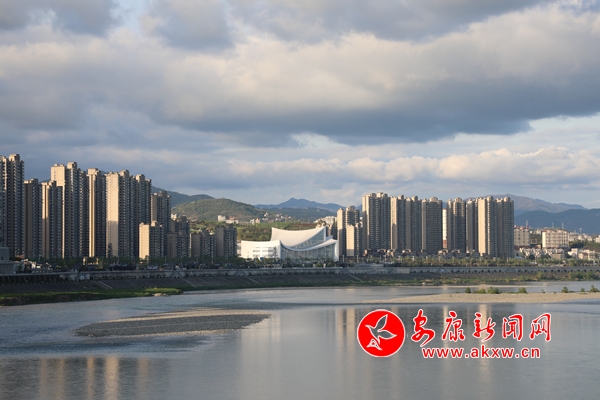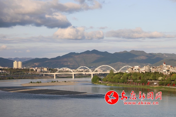 節(jié)逢清明,雨霽初晴。落日熔金,清江如練。天藍(lán)若海,流云似鯨。畫中城,城中畫,兩岸青山翠欲滴 ,春色滿城等你來(lái)。ㄓ浾 劉淵) fUE安康新聞網(wǎng)