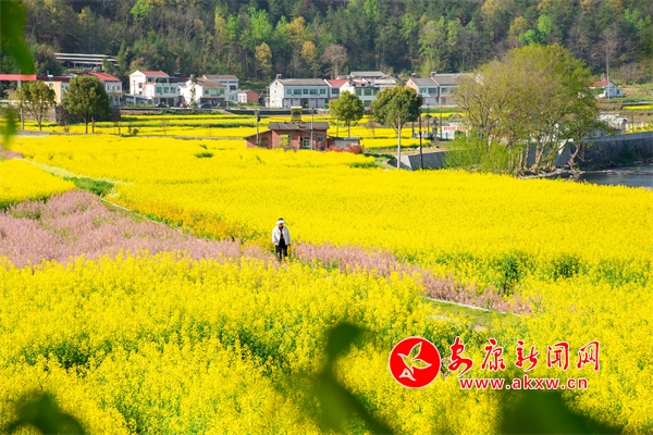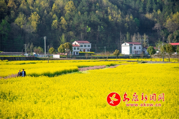 近日,石泉縣中池鎮(zhèn)境內(nèi)的油菜花競(jìng)相開(kāi)放,金黃的油菜花田與村落民居交相輝映,一幅田園風(fēng)景畫(huà)惹人陶醉。儲(chǔ)招賢 攝BAG安康新聞網(wǎng)