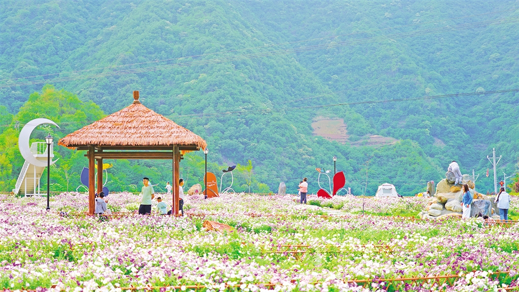 5月的白河,青山如黛,綠意蓬勃。乘車沿著縣城二級(jí)路走進(jìn)位于構(gòu)朳鎮(zhèn)涼水村的百福園花園,眼前驟然鋪開一幅色彩斑斕的畫卷。牽牛花如彩色小喇叭般昂首,小雛菊似亭亭玉立舞者般輕盈,格桑花如雪域仙子般干凈素雅,群芳爭(zhēng)艷間,將鄉(xiāng)村田園的質(zhì)樸與浪漫詮釋淋漓盡致。草坪野餐、放風(fēng)箏,露天營(yíng)地等娛樂項(xiàng)目吸引了眾多游客紛至沓來。 (通訊員 周驍)