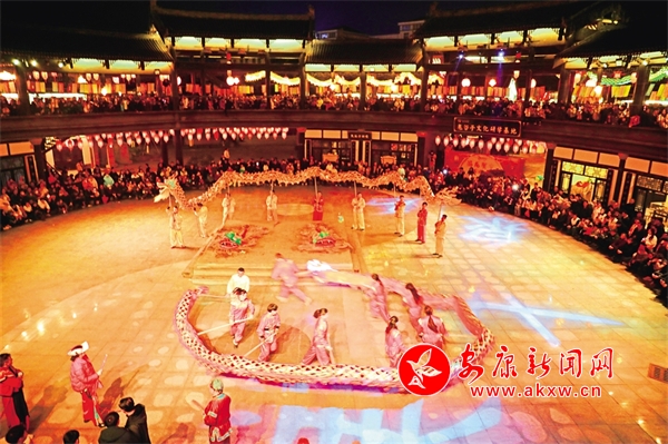 春節(jié)期間,嵐皋縣舉行了燈光秀、舞獅、采蓮船等系列民俗文化活動。陳陽 攝EVM安康新聞網(wǎng)