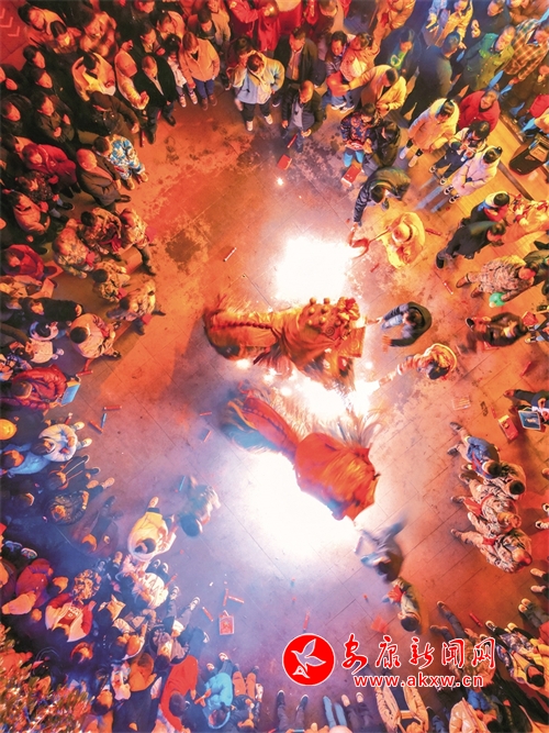 2月16日,在石泉縣秦巴風情園景區(qū),當?shù)孛耖g藝人的舞龍舞獅表演,吸引了眾多市民和游客觀看欣賞。許兵 攝EVM安康新聞網(wǎng)