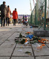 12月1日,市民陳先生打來熱線反映,市民在金州廣場中心雕塑邊亂扔垃圾現(xiàn)象非常嚴重。15∶30分記者趕到金州廣場,發(fā)現(xiàn)因為天氣晴好,大量市民在廣場上休閑曬太陽,可是幾乎每隔百米就有一堆游人亂扔的垃圾,廣場中心雕塑邊更成了“重災區(qū)”。各種果皮、廢紙幾乎布滿了雕塑下的臺階,想繞開曬太陽的市民又不踩到垃圾都沒法上到雕塑頂臺。